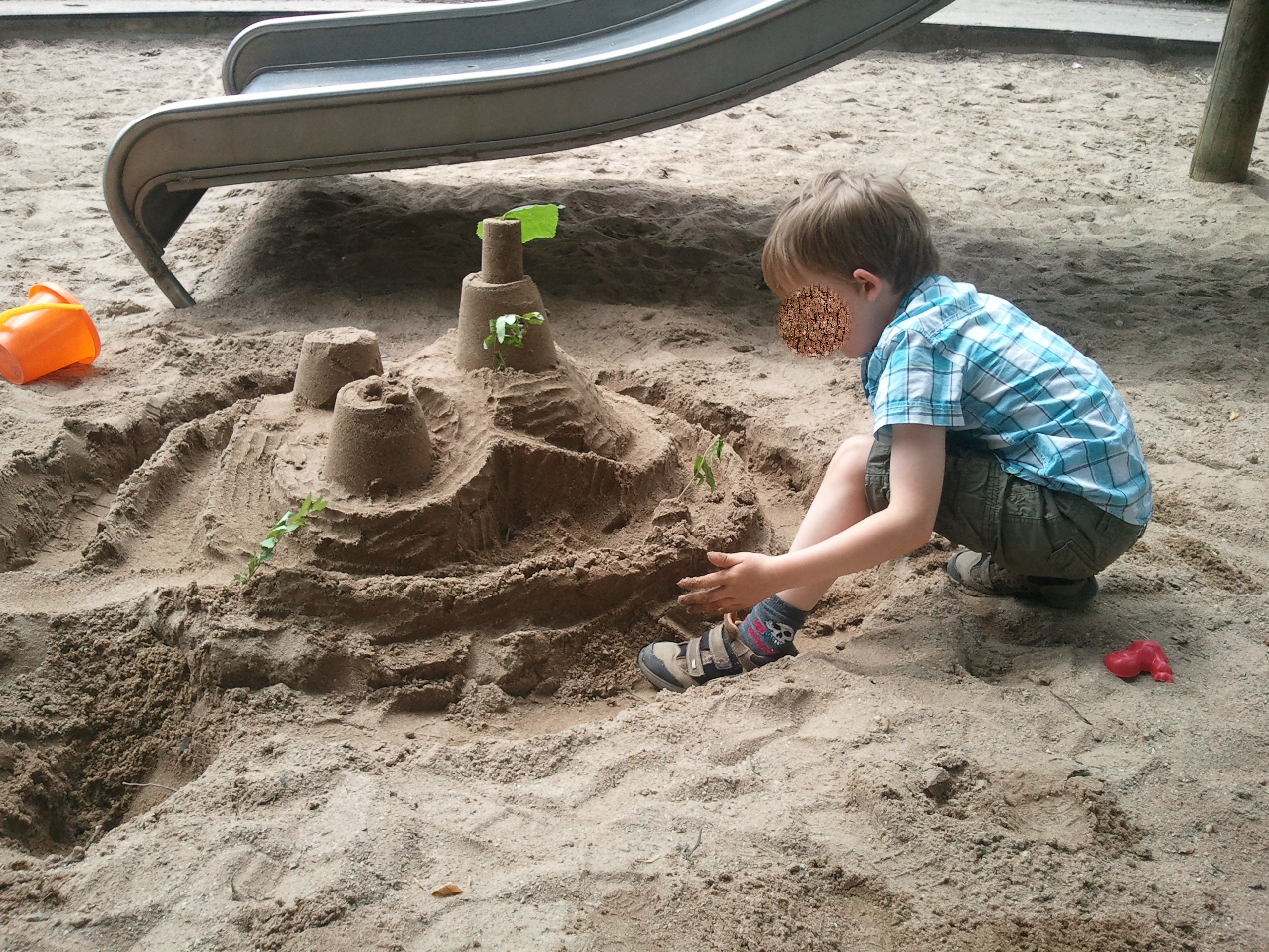 Du als Burg-Erbauer, mit Papa und einmal als Biker