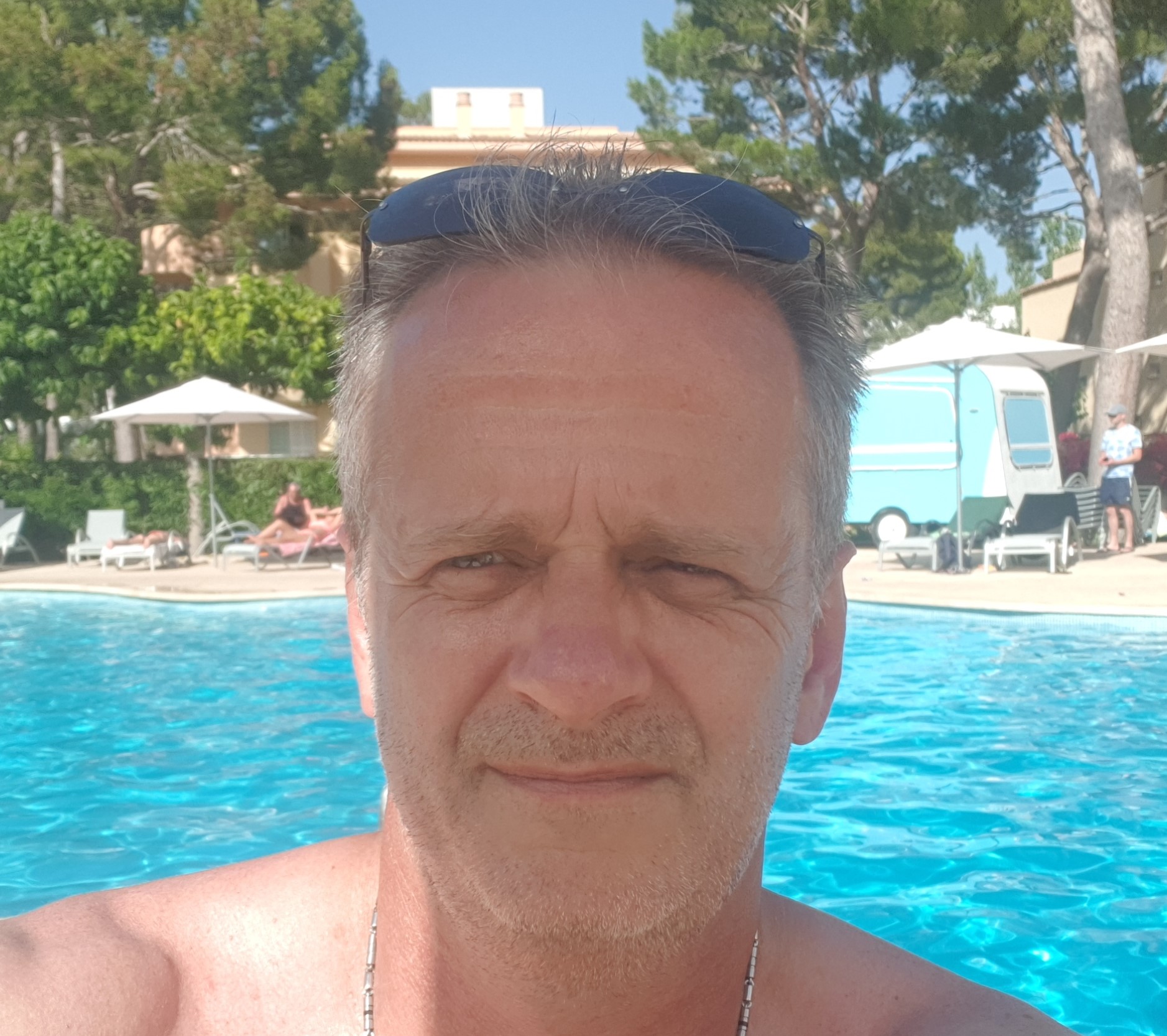Ich mit Blick in den Garten, zweimal Sommer Fotos, Du mit Rene und einmal mit mir (ich muss dich aus rechtlichen Gründen unkenntlich machen)